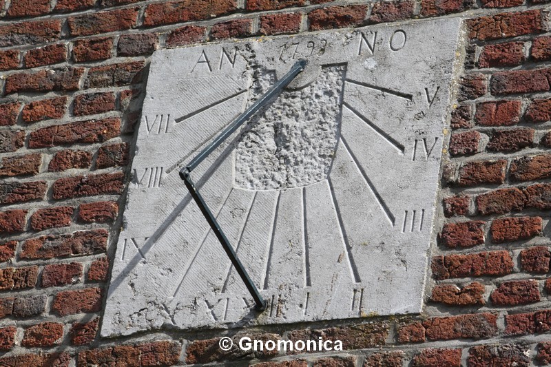This dial does not lie on its original wall and is very badly oriented: the picture show here has been taken at 18h30 (civil hour).