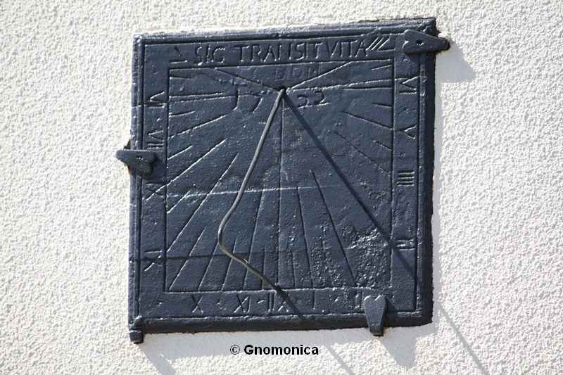 This sundial indicates time from 5 to 7 with roman numerals.