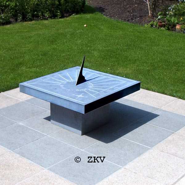 Due to the fact the sundial was designed for an existing pilar, the style (which has to point to the North) as well as the 12h line are not parallel to the side of the stone.