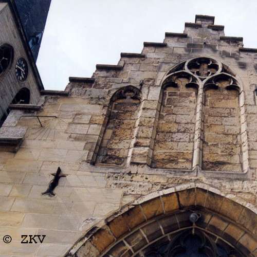There is a sundial left to the stepped gable. This is the restored version of one that was originally on the right of the gable.