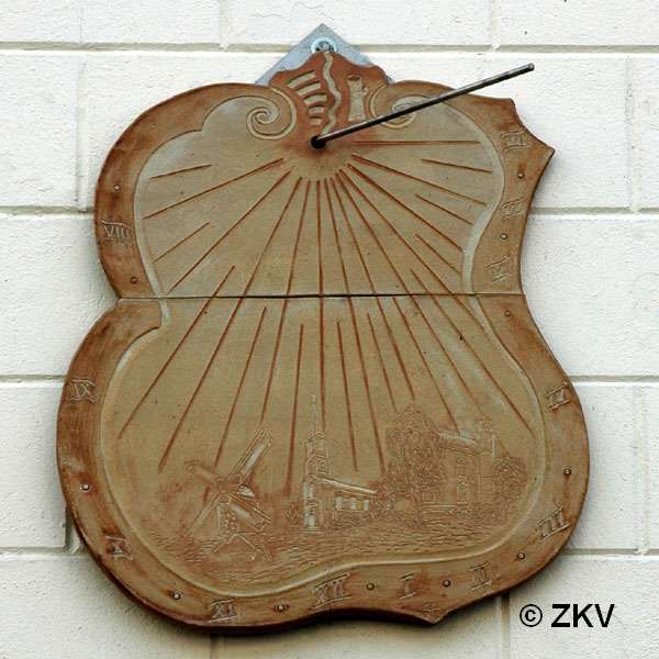 Probably the one and only sundial with the drawing of the arms (abode the style), the mill, the church ans the castle of the city.