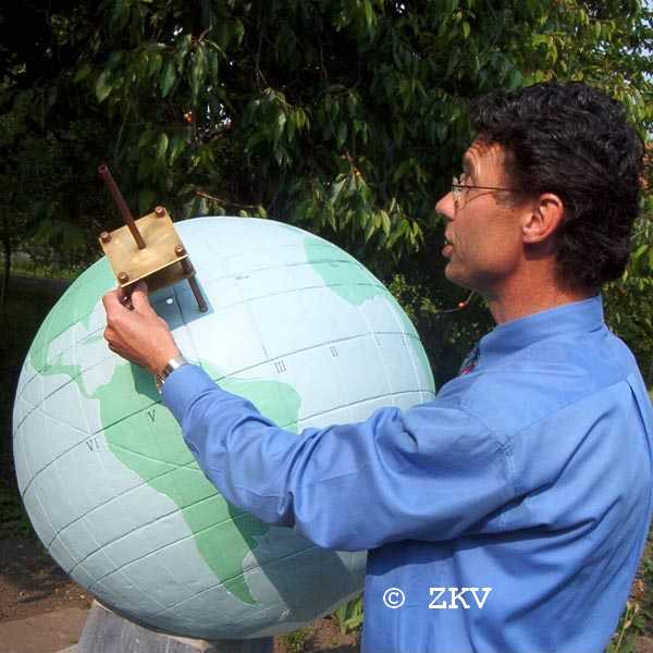 Ce cadran a l’aspect d’un globe terrestre. Les méridiens servent de lignes horaires.