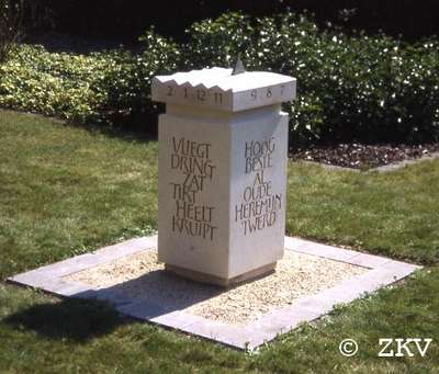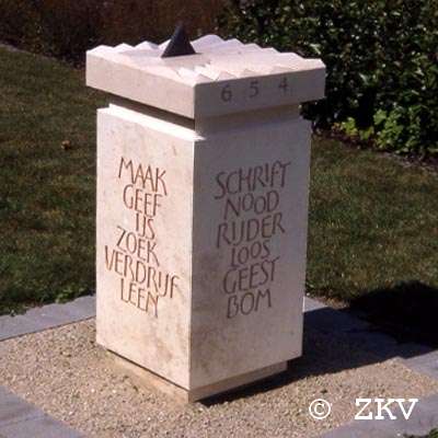 Les lignes horaires sont en relief. Dans le texte sur le socle, il manque le terme indispensable TIJD, par exemple: MAAK (TIJD), (TIJD)LOOS, HEREMIJN(TIJD)