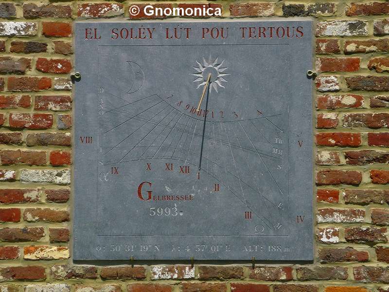 The sundail is made in a stone (100x100cm) of Soignies (blue stone in Hainaut)
