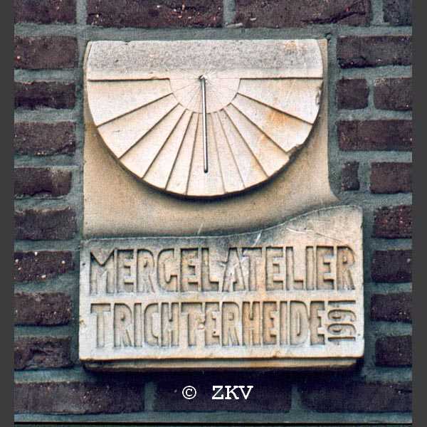 In the Syntra training center, there was in the past a stone cutting workshop directed by Harry Jongen. This sundial was designed for a new part of the building. Time lines are represented by a gradual relief. See also the sundials from Herry Jongen in Maasmechelen and in Riemst.