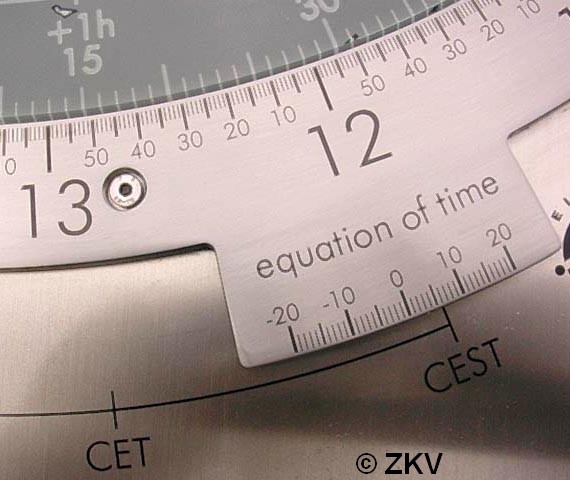One must daily adapt this position to take the equation of time into account (not for the solar time). This is why there is some scale for ± 20 minutes.