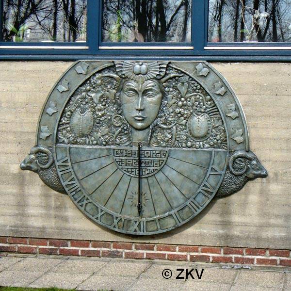This charming sculpture on the facade looks like a sundial but is actually not. The design of the time lines is just a proportional division of a half circle. The style is fixed on the table and h-hangs uselessly, probably because it would have disturbed the passage.