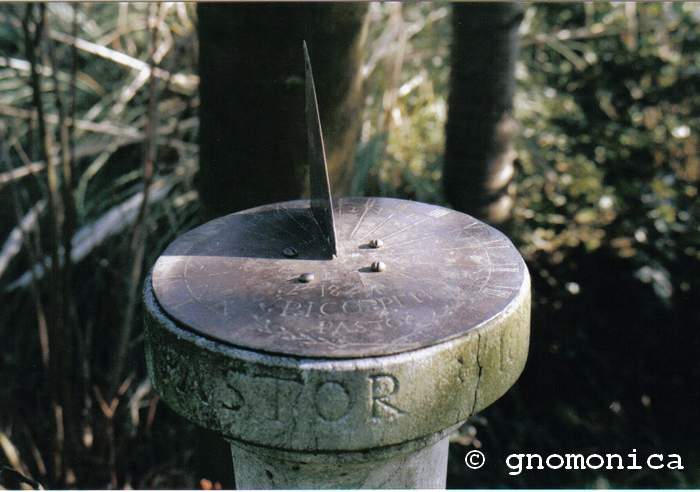 Sur le cadran et sur la tranche du socle en pierre, il est inscrit : 'PICOPPEIIS PASTOR 1829'