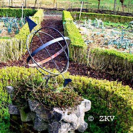 Cadran simple, abîmé par le temps, dans un jardin éducatif.