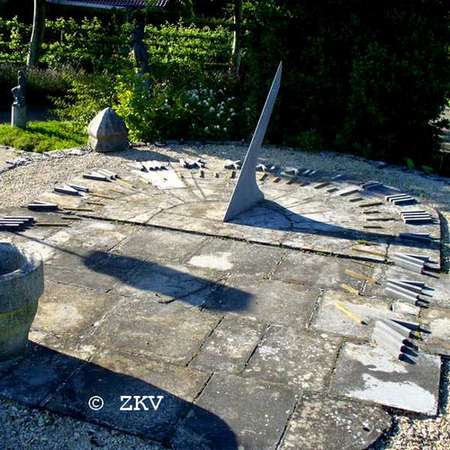 Ce cadran solaire de 2 mètres de diamètre est implanté sur le sol d’un jardin de plusieurs hectares.
