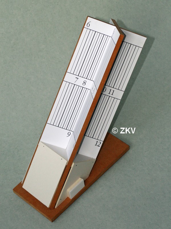 Door zijn schuine plaatsing fungeren de randen als poolstijlen en zijn de uurlijnen evenwijdig.