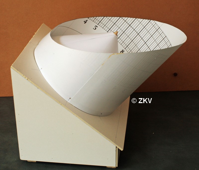 Dit is een cilindrische zonnewijzer voor de ware plaatselijke zonnetijd.