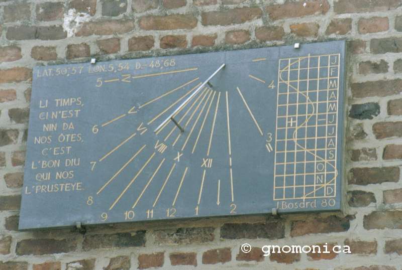 Spreuk : Li timps, ci n'est nin da nos ôtes, c'est l'bon diu qui nos l'prusteye.