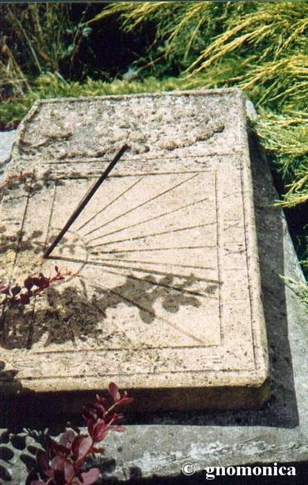 De zonnewijzer is op een betonnen sokkel geplaatst.