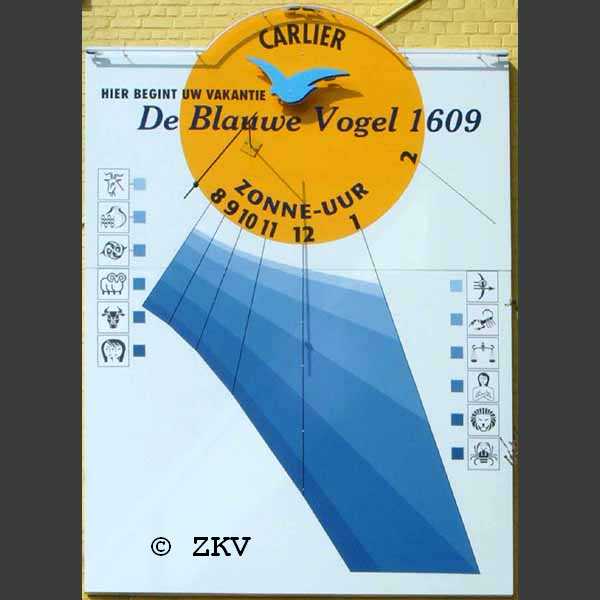 Spreuk : CARLIER - HIER BEGINT UW VAKANTIE - De Blauwe Vogel 1609 - ZONNE-UUR