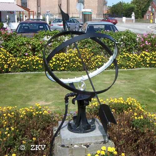 Een grappig detail: in het statief van de zonnewijzer is de waterleiding verwerkt voor het besproeien van de tuin.