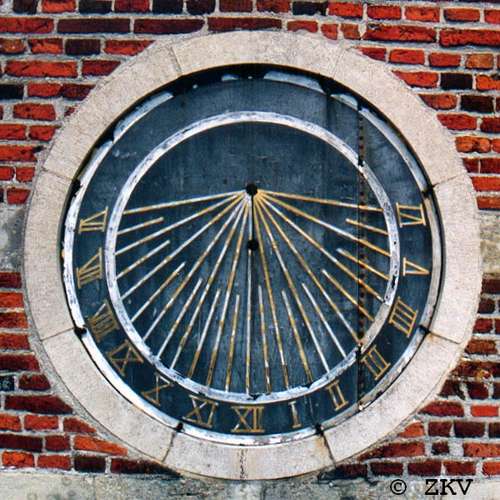 Een zonnewijzer aanbrengen nabij een torenuurwerk was gebruikelijk. Het uurwerk - destijds nog niet zo nauwkeurig - moest 'op tijd en stond' juist gezet worden op het uur van de zonnewijzer.